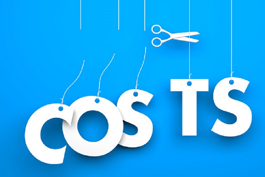 Scissors cuts word COSTS. Conceptual business image